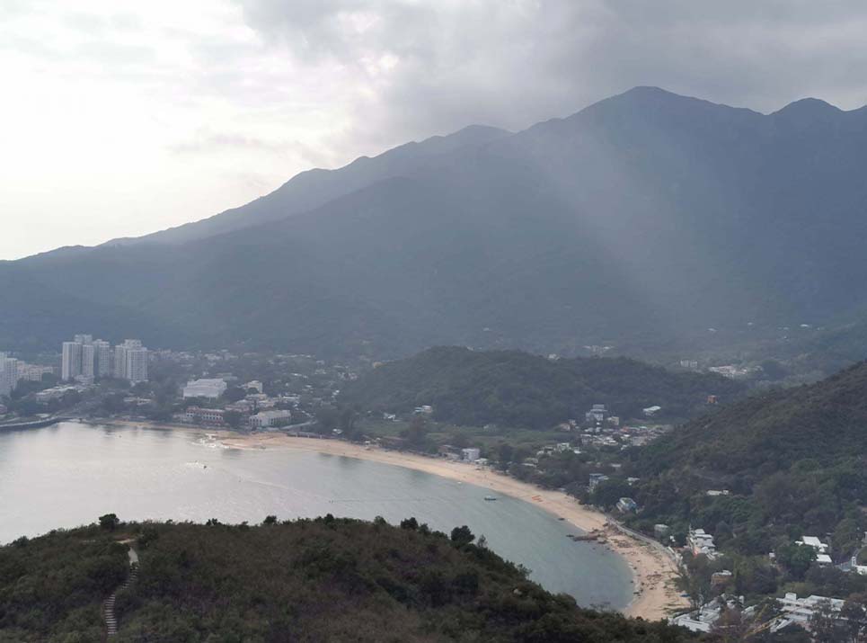 梅窩起步過銀礦灣,接步道上斜分岔路標愉景灣方向,上頗長的石級步道,行約45分鐘到山坳涼亭(210米)。沿途俯覽梅窩銀鑛灣的美麗景色。