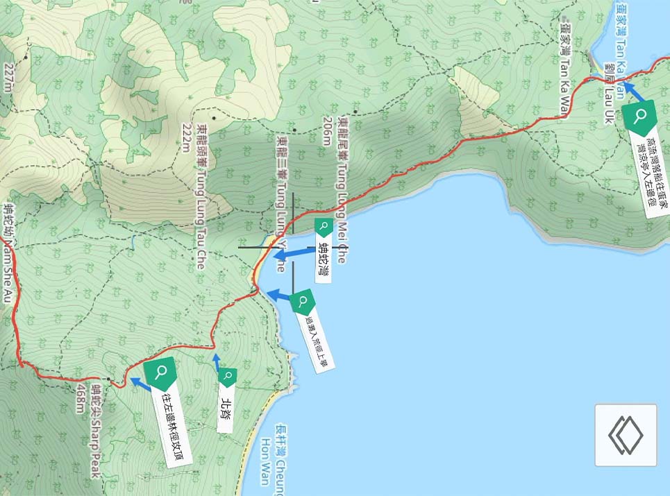 一般上蚺蛇尖(468m),多在大浪坳往南脊上。但今次改從較南脊更險峻的北脊上,從另一角度欣賞一瀉百米的山崖及西貢東的山海風光。