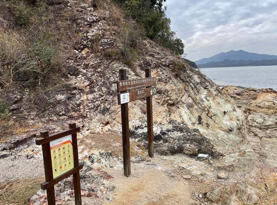 西貢乘搭往海下專線小巴在白沙澳下車,轉入村徑,經南山洞落坡往荔枝莊,過露營區及小渡輪碼頭旁,步入國家海岸地質公園,欣賞考究海岸石岩地質。沿海岸公園行至山咀轉入山徑上坡往雞麻峒,山徑入口較隱蔽,稍轉高位後即開揚風景。雞麻峒207米,可遠眺海岸地質公園及海峽風光,稍作停留打卡。