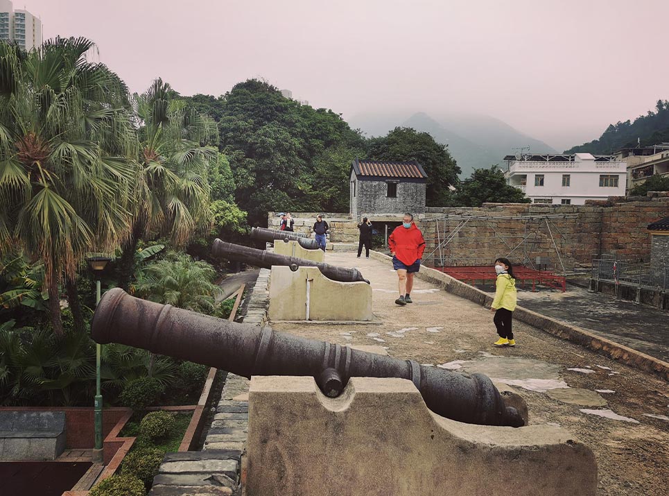 逸東邨起步。順遊覽建於清朝道光期間的東涌炮台古蹟;炮台沿車路行前些過行人天橋,選路標方向往侯王廟,接東澳古道,路線明確,步道沿海邊而行,望對岸的機場區。
